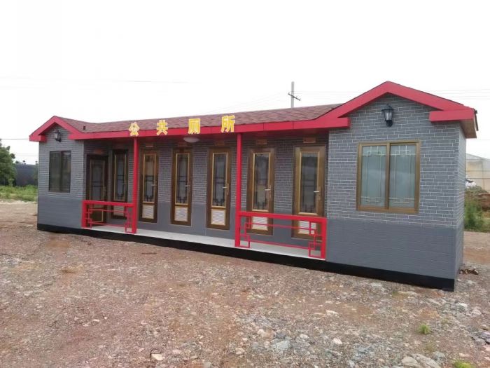 拼裝廁所;在廠里做好各個廁所部件,再到現場組裝在一齊,適合不易運輸的大型廁所。這座箱式廁所,女廁5個蹲位內配工具間,男廁2個蹲位+2小便斗,第三衛生間由殘疾馬桶、助力洗手盆和兒童馬桶、兒童洗手盆外加嬰兒臺等設施。廁所前后有窗,通風采光,前部走廊裝有屋檐,防雨防曬。此廁所位于公路綠道邊,整體大氣,功能齊全,造型美觀,是一道難得的靚麗景觀!